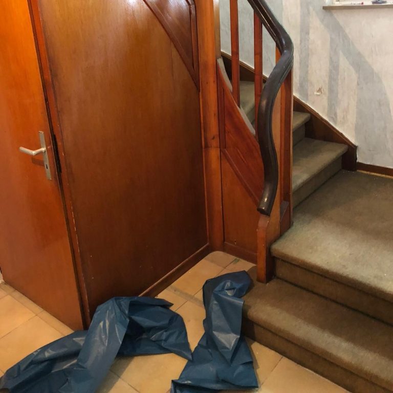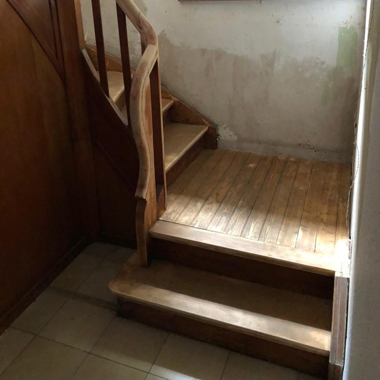 Hier haben wir den Teppich entfernt und das Holzwerk geschliffen.