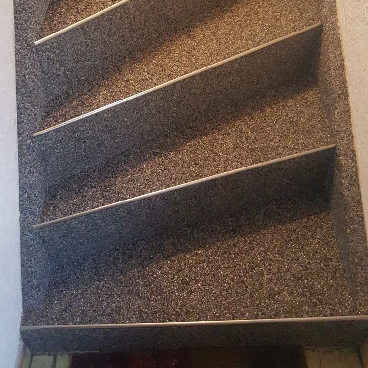 Fertige Treppe mit Steinchenteppich